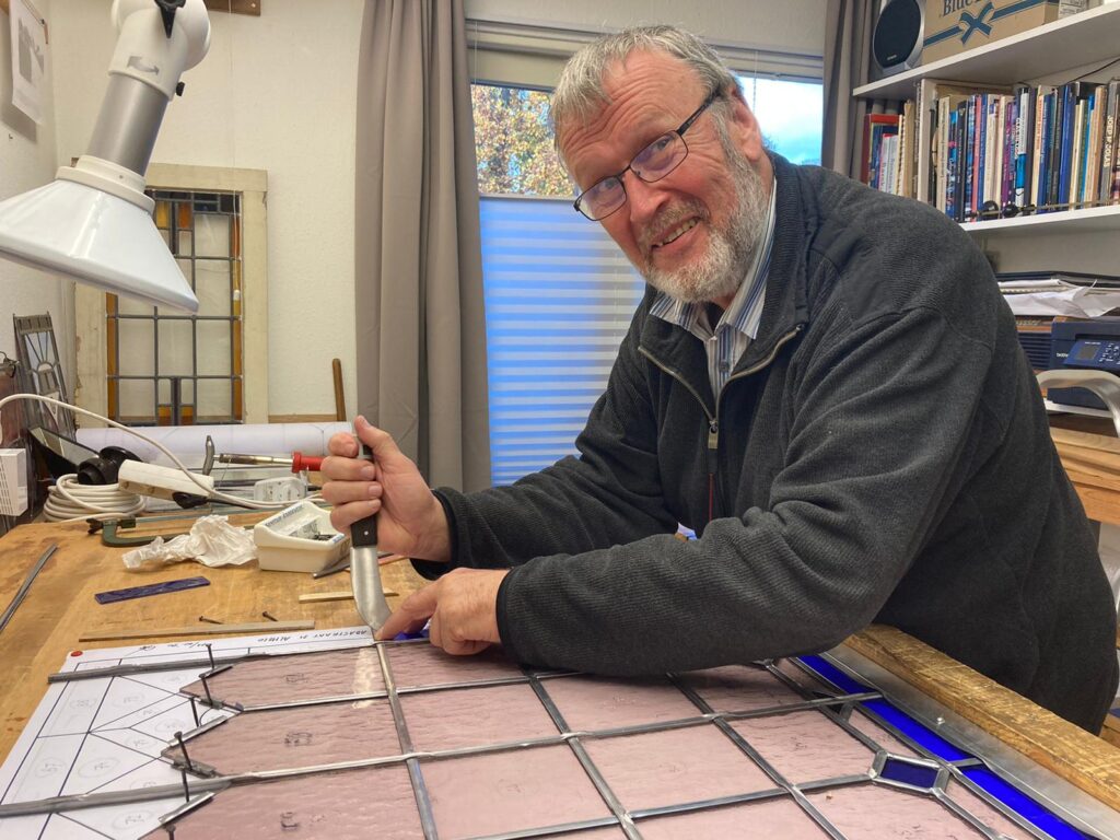 In een klein maar voor mij praktisch ingericht atelier in mijn woning in Delden vervaardig ik al weer 25 jaar Glas in Lood objecten. Wat voor mij, naarst mijn werk als technisch adviseur in 2000 als hobby begon is het na mijn pensionering in 2019 nog steeds een (beetje uit de hand gelopen) hobby.
